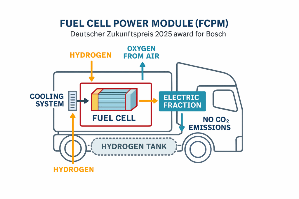 Fünfmal war Bosch zwischen 1998 und 2013 für den Deutschen Zukunftspreis nominiert, dreimal wurden Teams von Bosch oder mit Bosch-Beteiligung ausgezeichnet: 2005 für Piezo-Injektoren, 2008 für smarte Sensoren sowie 2013 gemeinsam mit Trumpf und der Uni Jena für Ultrakurzpulslaser. Mit dem Deutschen Zukunftspreis 2025 für das Fuel Cell Power Module führt Bosch diese Erfolgsgeschichte fort. Das Unternehmen zeigt damit nicht nur seine technologische Stärke, sondern auch seine Vision für die Zukunft: Eine Welt, in der Wasserstoff und Brennstoffzellen entscheidend zur Dekarbonisierung des Verkehrs beitragen.